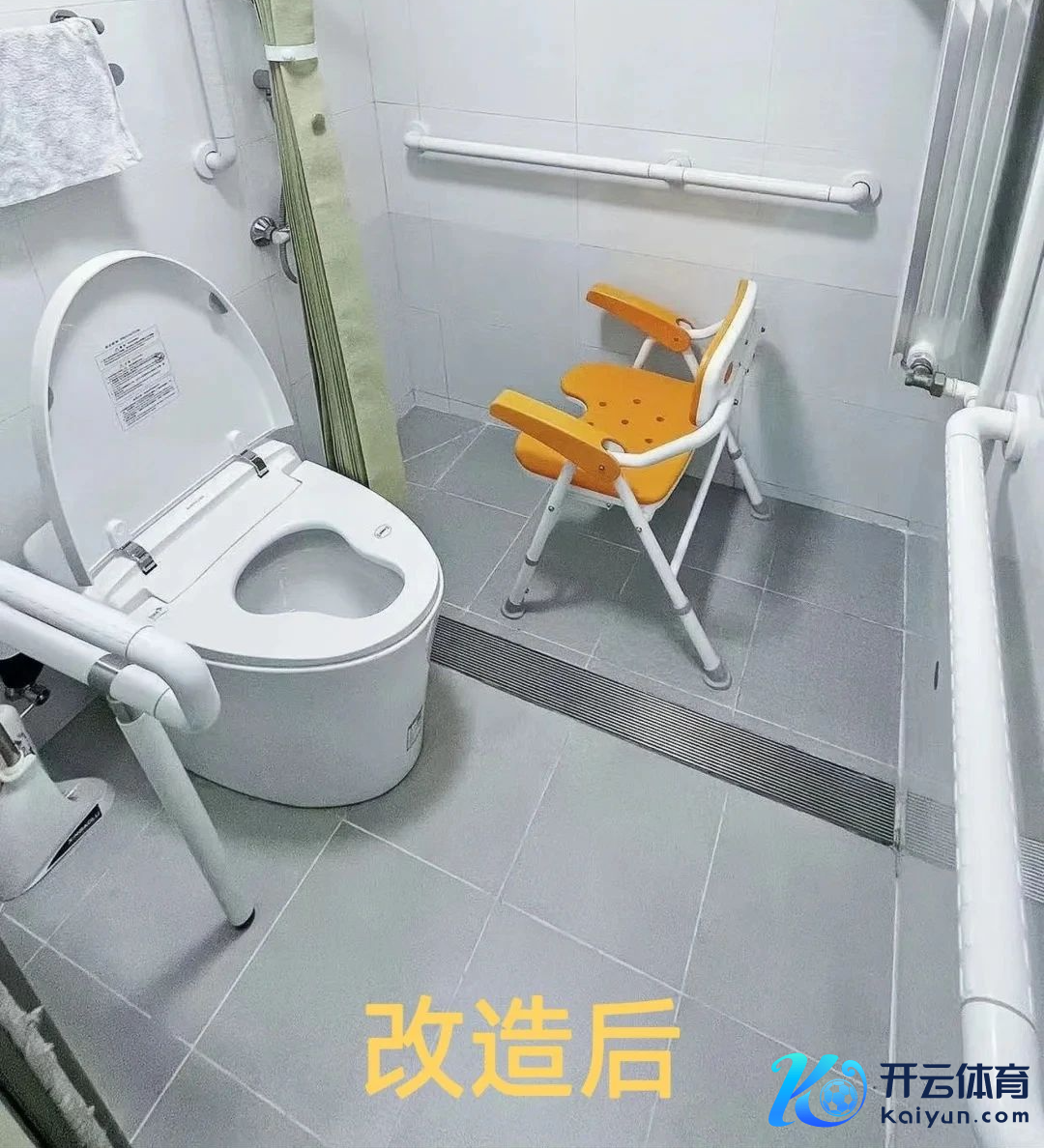 临了,一又友迫害把卫生间进行了篡改,考虑到家里的老东谈主年龄越来越大,撤掉浴缸,改酿成淋浴区域,腾出空间加多防滑地垫和扶手,这么不仅骄矜洗澡的悠闲性,还确保了老年东谈主使用的方便性和安全性,况且每次淋浴之后,顺遂就把大地算帐干净了,极度方便。