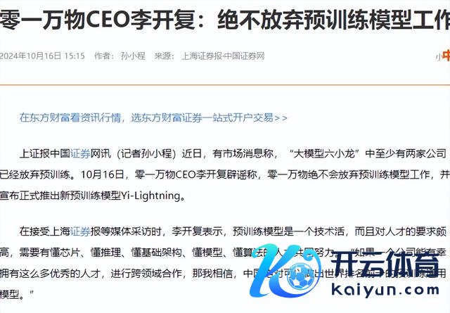上海证券报 2024.10.16——零一万物CEO李开复:接不废弃预实践模子办事