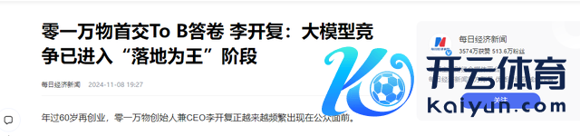 零一万物首交To B答卷 李开复:大模子竞争已进入“落地为王”阶段——逐日经济新闻2024-11-08