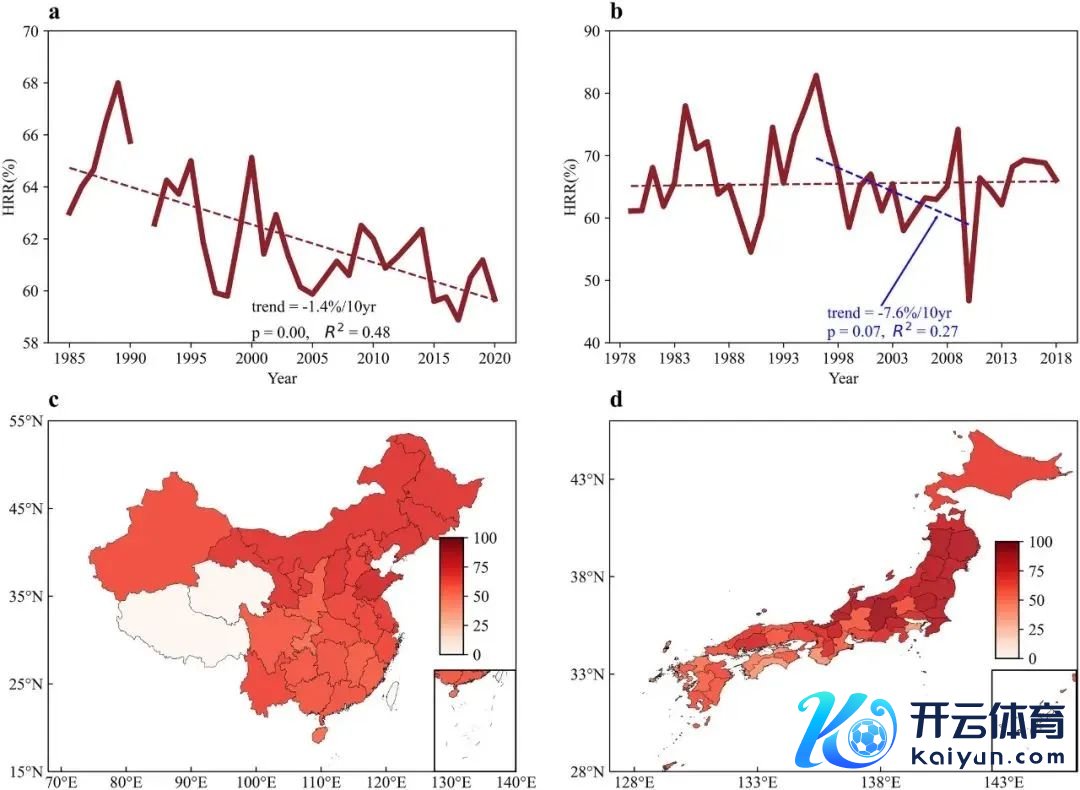 在最近发表的这篇论文中,究诘东谈主员分析了1985-2020年间中国水稻究诘所纪录的稻谷品性数据,以及1979-2018年间日本农林水产省所纪录的一级品性大米率数据,揭示了两国昔时几十年的水稻品性变化趋势。