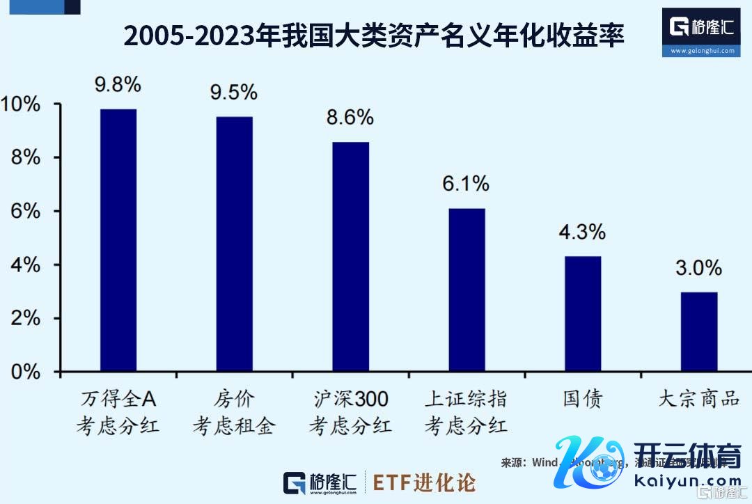 中国主要大类钞票的收益率阐扬呈现出相似特征。2005-2023年,万得全A(研讨分成)年化收益率为9.8%,位居种种钞票之首;沪深300指数(研讨分成)的年化收益率达到8.6%;上证综指(研讨分成)的年化收益率为6.1%;以中债国债总指数忖度的债券年化收益率为4.3%;CRB现货指数代表的巨额商品年化收益率为3.0%。港股方面,1964-2023年恒生指数年化收益率为10.1%。