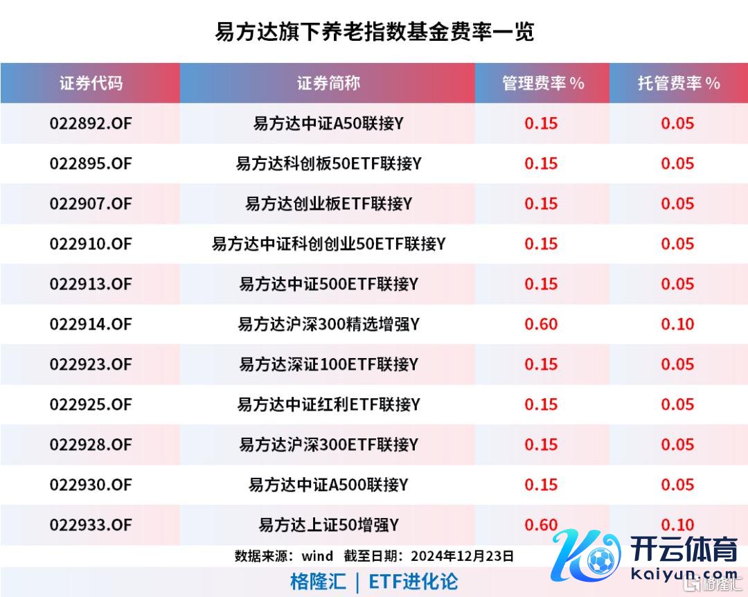 具体来看,入围的居品包括易方达中证A500ETF集中Y(022930)、易方达沪深300ETF集中Y(022928)、易方达中证红利ETF集中Y(022925)、易方达创业板ETF集中基金Y(022907)、易方达上证科创50集中Y(022895)等。