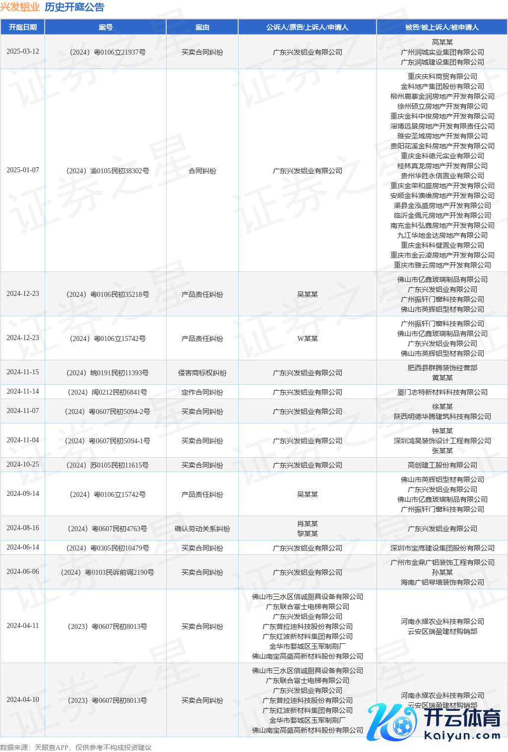 本站音问,凭据天眼查APP表现,近日公布了一则广东兴发铝业有限公司手脚原告/上诉东说念主的开庭公告云开体育,详备实质如下: