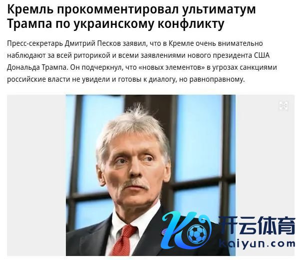详尽俄新社、俄罗斯《交易东谈主报》报谈,当被问及如何评价好意思国总统特朗普的近期涉俄言论时开云体育,俄罗斯总统新闻书记、克里姆林宫发言东谈主佩斯科夫示意,俄纯碎密切关心特朗普的通盘言论和声明。