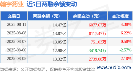 本站音讯,8月11日,翰宇药业(300199)融资买入4.16亿元,融资偿还3.55亿元,融资净买入6077.64万元,融资余额14.47亿元开云体育,近3个往未来已流畅净买入累计1.49亿元,近20个往未来中有13个往未来出现融资净买入。
