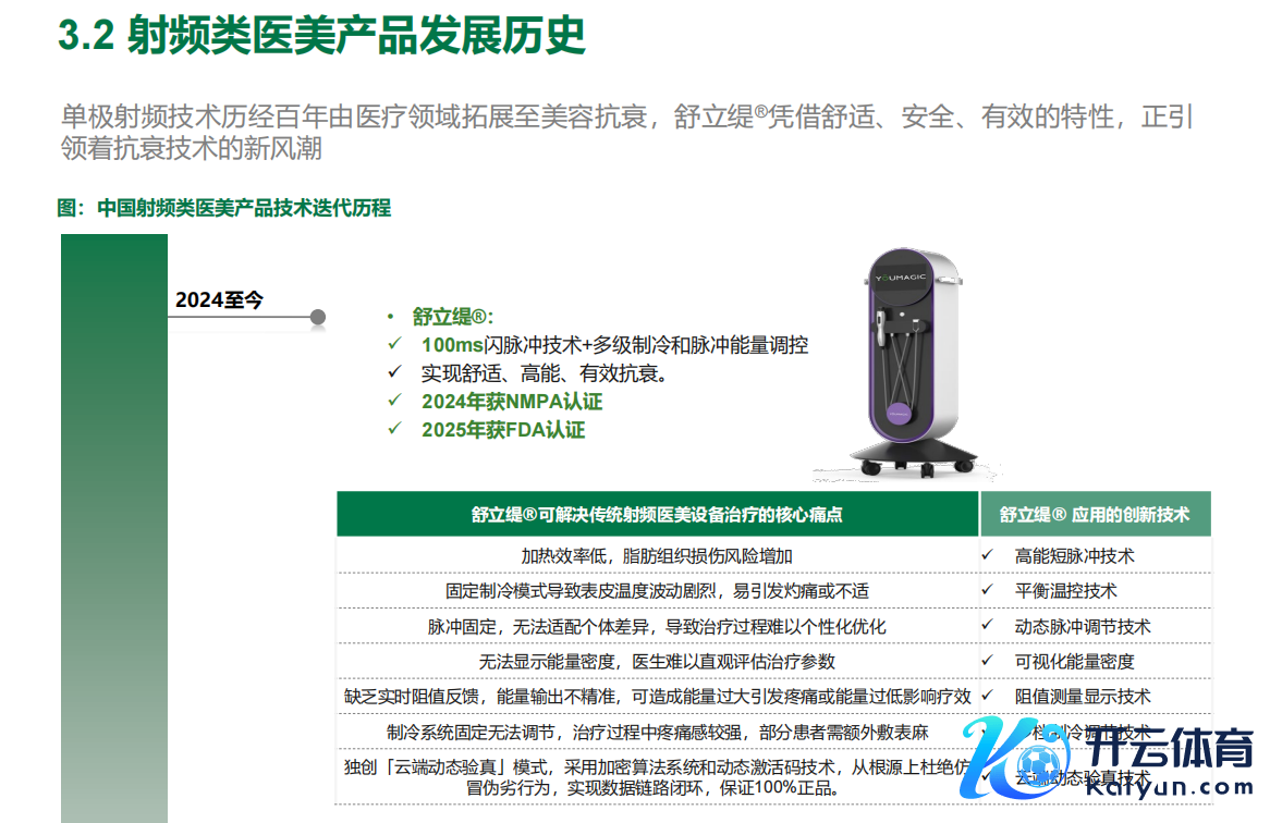 以YOUMAGIC舒立缇为例,蓝皮书深度理会了中国射频工夫的冲破旅途与行业价值。指出舒立缇的“全新一代高能待机射频工夫”具备工夫冲破性,让“高能、简洁、有用和可捏续”成为行业新工夫谈话,也进一步鼓舞射频抗衰工夫的程序化、临床范例化。